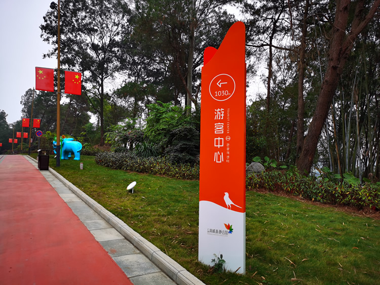 如何貫徹到實(shí)際定位呢? 可以從標(biāo)志導(dǎo)向板的素材、造型設(shè)計(jì)、顏色等級著手。標(biāo)識標(biāo)牌的材料對標(biāo)識導(dǎo)向系統(tǒng)風(fēng)格的危害至關(guān)重要。