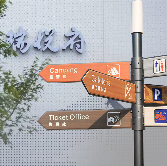 首先,導(dǎo)向標(biāo)識標(biāo)牌提供的信息必須滿足定位需要,并有助于制定出入計劃。 其次,根據(jù)需要向沿線提供向?qū)畔?,另外,目的地必須明確表示。 最后,下達(dá)的命令必須盡可能簡單安全地推動人們前進(jìn)。 導(dǎo)向標(biāo)識標(biāo)牌系統(tǒng)最重要的目的,但不是唯一的目的,其目的是向外部傳達(dá)環(huán)境建筑本身或建設(shè)者的強(qiáng)制性和補(bǔ)充性信息,有助于內(nèi)部溝通,從而創(chuàng)造良好的公共關(guān)系和品牌形象。
