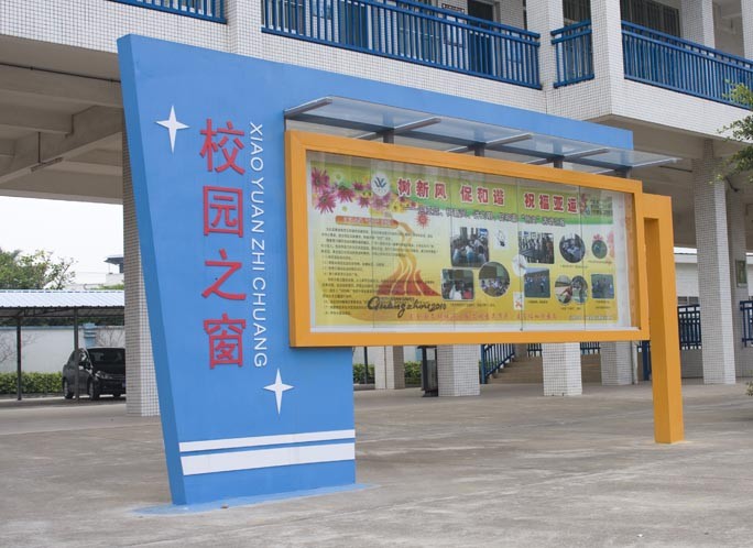 校園宣傳欄的材質一般可以采用不銹鋼和鍍鋅板材質,設計風格端莊大氣,材質一定要耐用,具有防腐蝕,耐用,抗日曬的特點,并且噴塑的顏色要多樣化,避免單一,給客戶提供更多的選擇性。