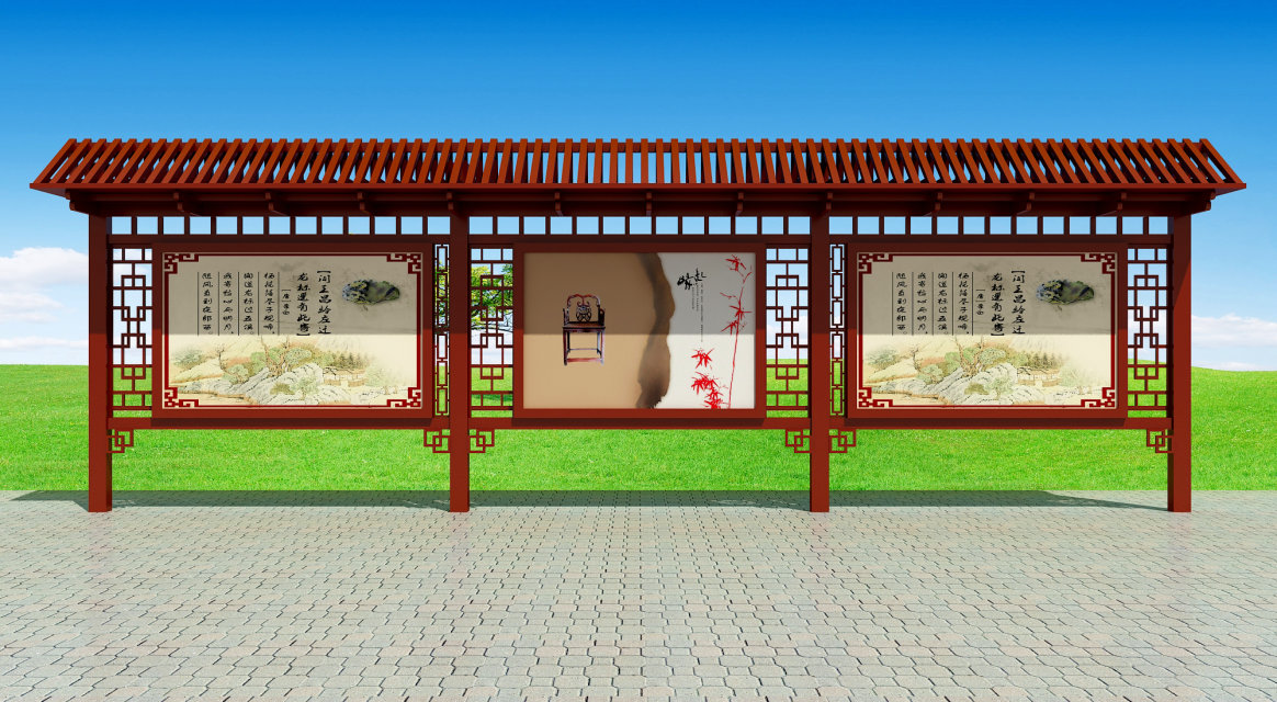 戶外仿古展示欄比較具有中國(guó)傳統(tǒng)文化風(fēng)格。仿古的設(shè)計(jì),能將更多元素融入其中,更好的將自然文化和古文化結(jié)合在一起,為了讓宣傳欄更具有代表性,在不同的場(chǎng)景要有不同的設(shè)計(jì)。
