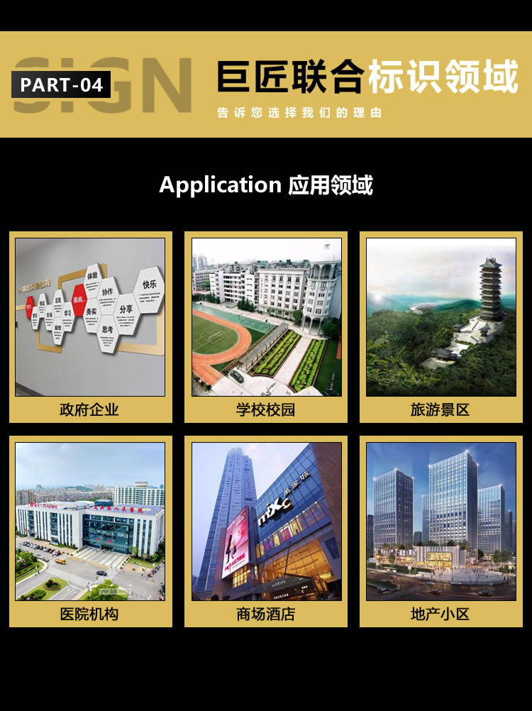 巨匠聯(lián)合標(biāo)識(shí)主要承接全國(guó)政府、企業(yè)、學(xué)校、商場(chǎng)、醫(yī)院、公園景區(qū)等全方面綜合型標(biāo)識(shí)標(biāo)牌工程項(xiàng)目。